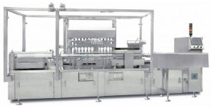 主要用于制药厂安瓿瓶在无菌条件下的灌装和封口。本机为多工位步进式传输系统,阳台式结构。能完成绞龙分瓶拨轮进瓶、前冲氮、灌装、后冲氮、预热、拉丝封口等工序。